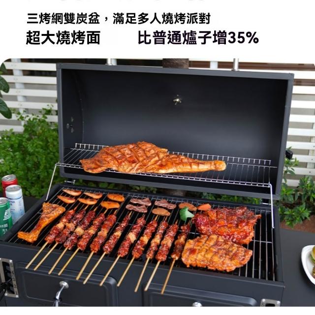 - 超大燒烤面積 三烤網雙炭盆