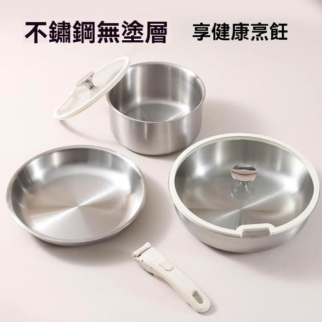 宜品居家carote不銹鋼鍋具 家用鍋具廚具套裝 無塗層不粘鍋(可拆卸手柄鍋/煎炒鍋奶鍋/可進烤箱洗碗機)