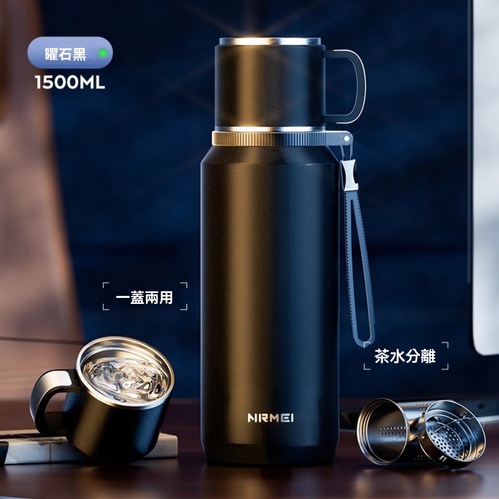 宜品居家nrmei316不銹鋼保溫杯 大容量保冷燜泡茶杯 水杯水壺(1.5L大容量/長效保溫保冰/一蓋兩用)