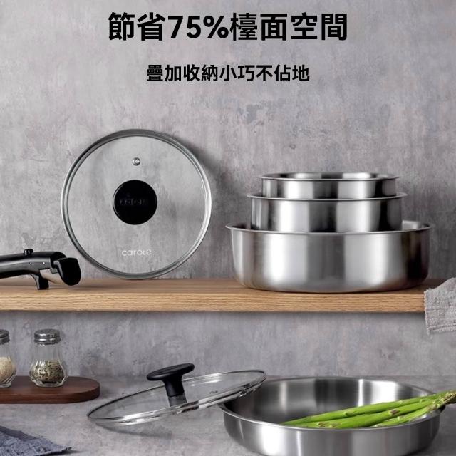 宜品居家carote不銹鋼可拆卸手柄鍋 無塗層煎炒鍋 蒸煮鍋具套裝(物理不粘/可進洗碗機烤箱/堆疊可收納)