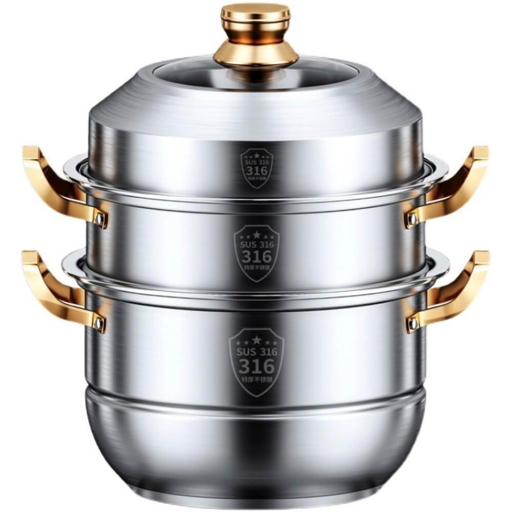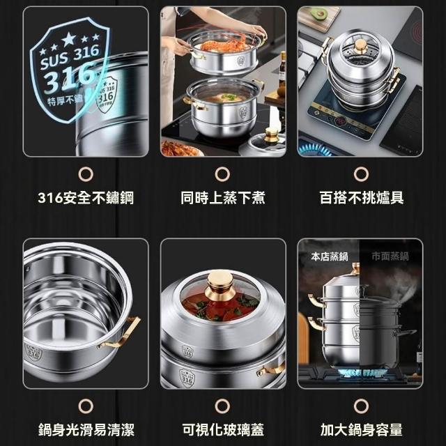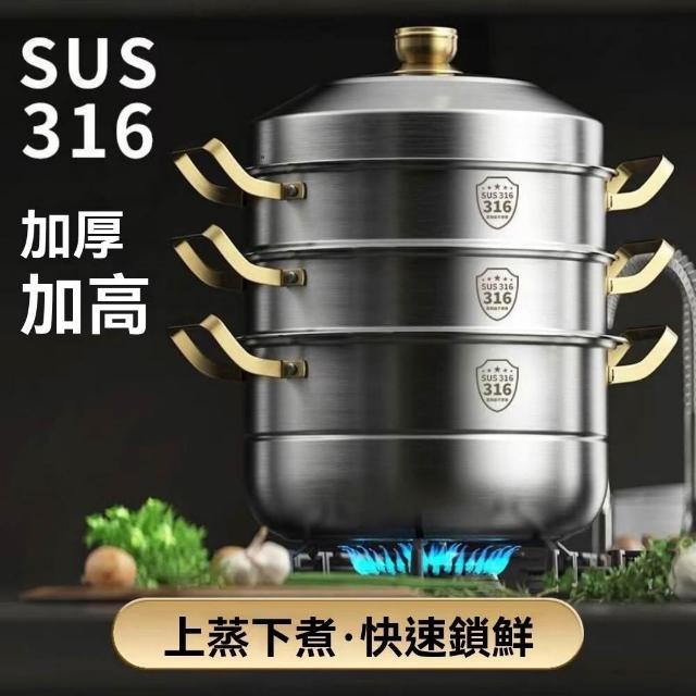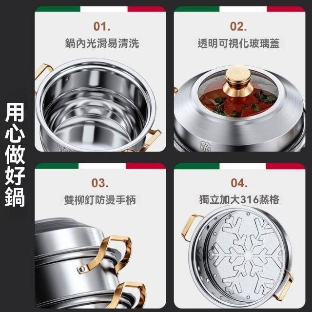 宜品居家多功能316不銹鋼蒸鍋 家用食品級加厚湯鍋 三層蒸饅頭蒸籠(下煮上蒸/高溫蒸汽循環/導熱快)