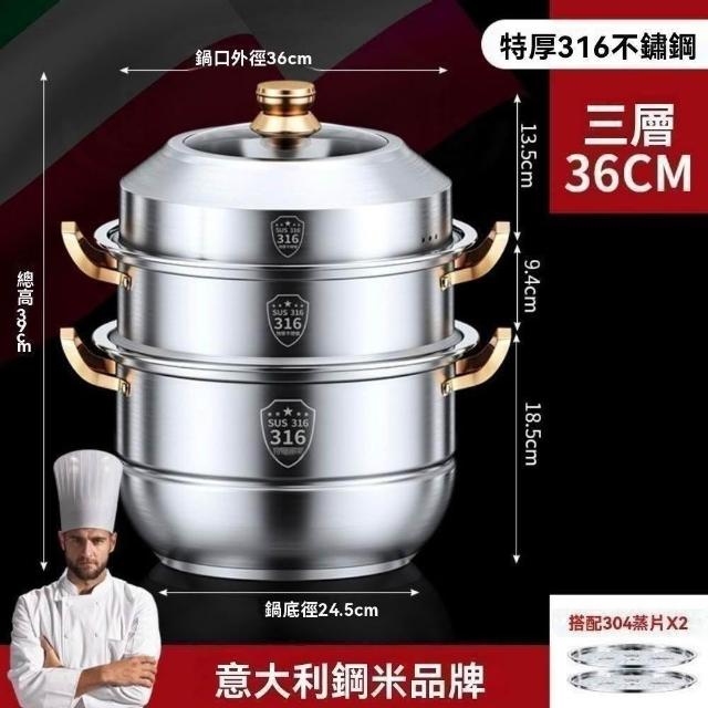 宜品居家多功能316不銹鋼蒸鍋 家用食品級加厚湯鍋 三層蒸饅頭蒸籠(下煮上蒸/高溫蒸汽循環/導熱快)