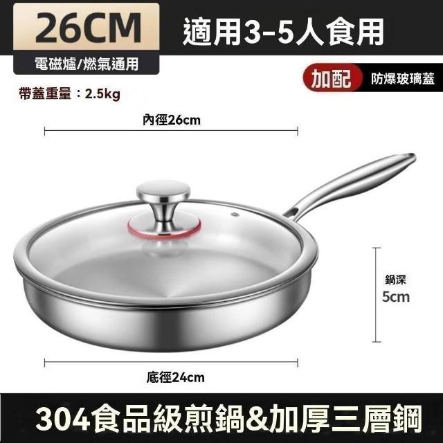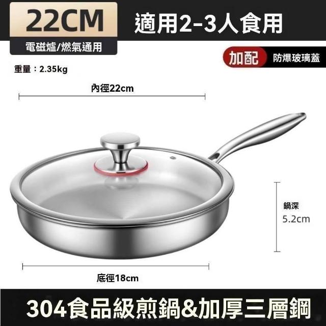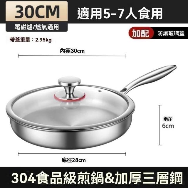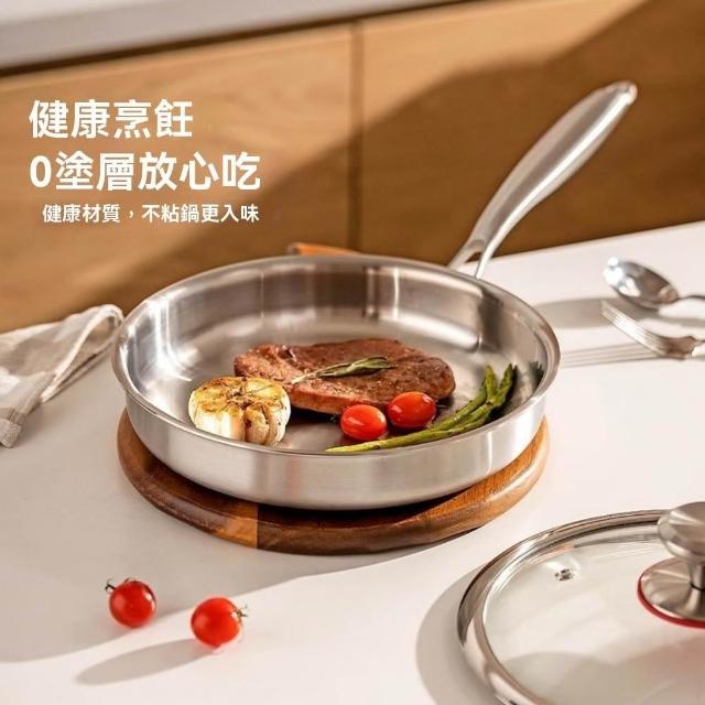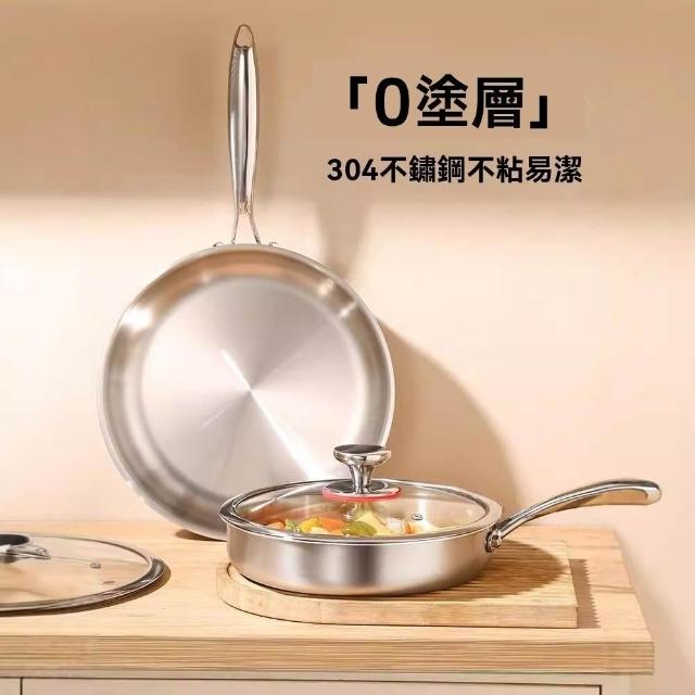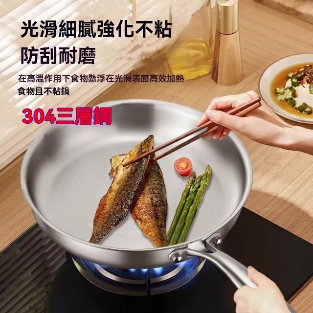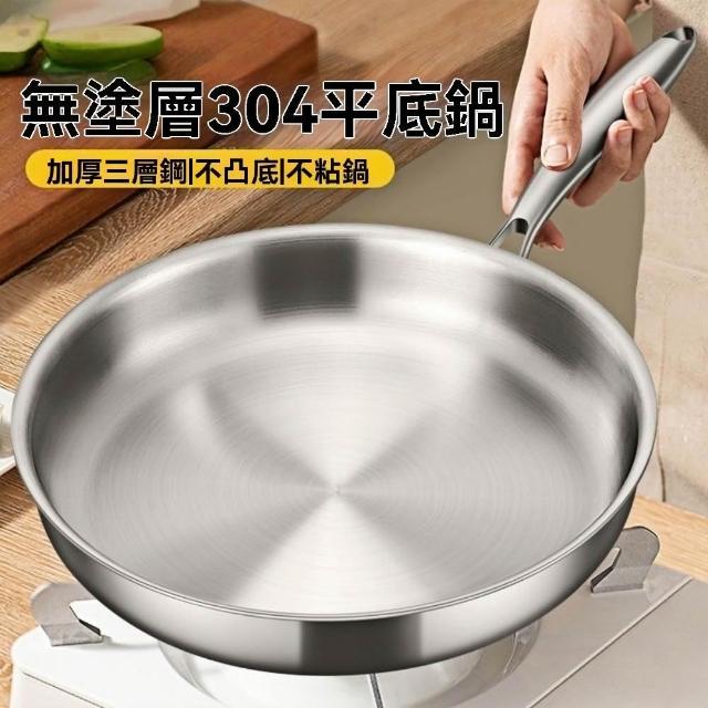 宜品居家無塗層304不銹鋼平底鍋 家用不粘鍋 加厚電磁爐煎炒鍋(物理不粘/防刮耐磨/輕油少煙)