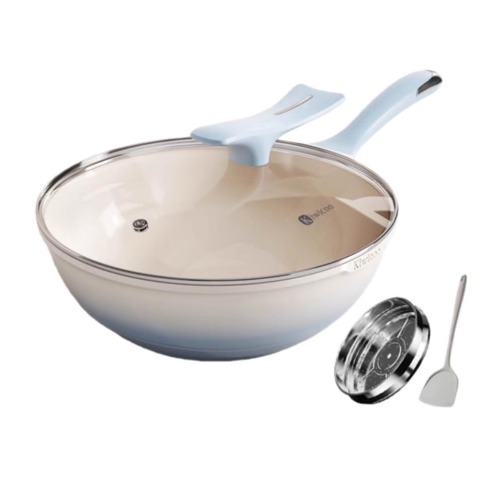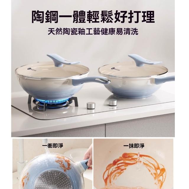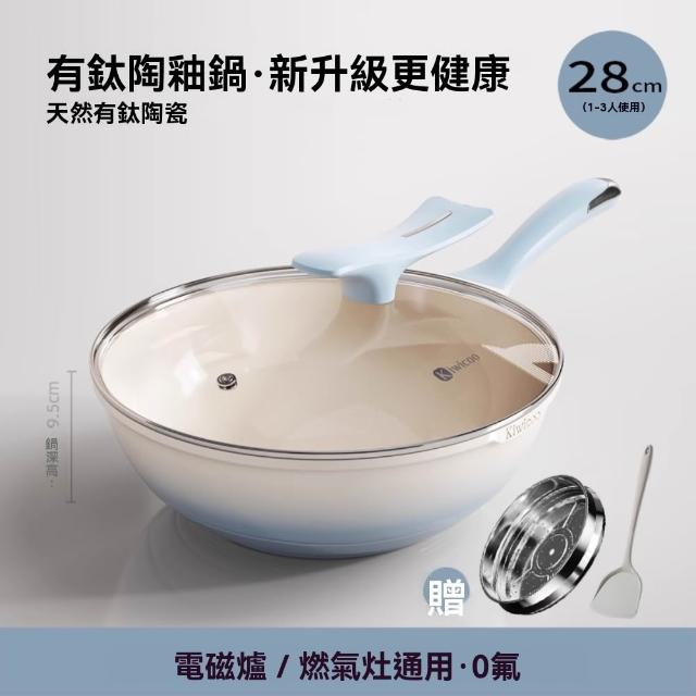 宜品居家32cm鈦陶瓷炒鍋 家用無塗層聚油不沾鍋 平底鈦鍋(高硬度/輕量鍋身/鈦瓷不粘)