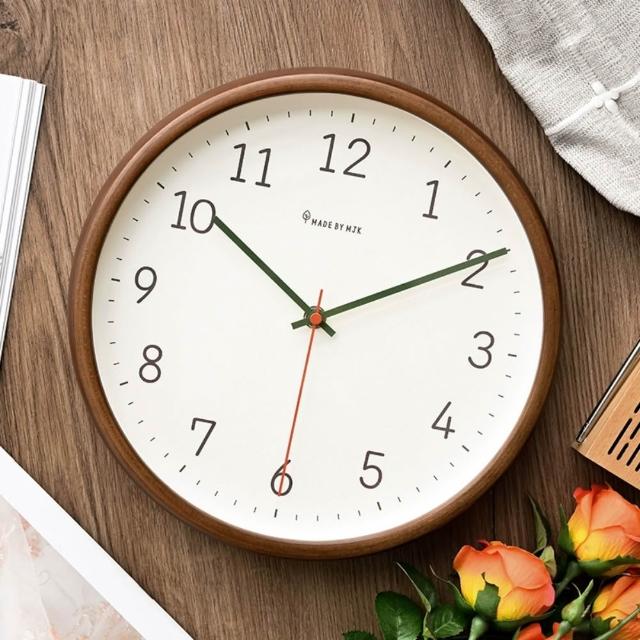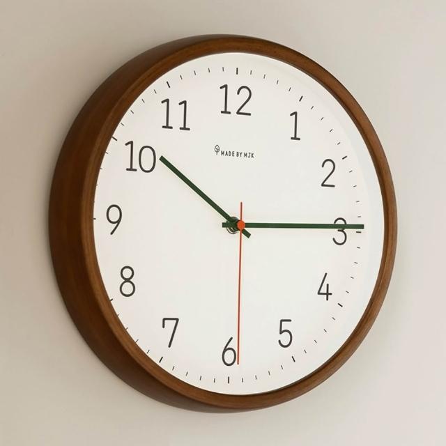 宜品居家MJK鐘表實木掛鐘 客廳家用簡約掛表 靜音時鐘掛墻石英鐘(12英吋/木質外殼/自動對時)