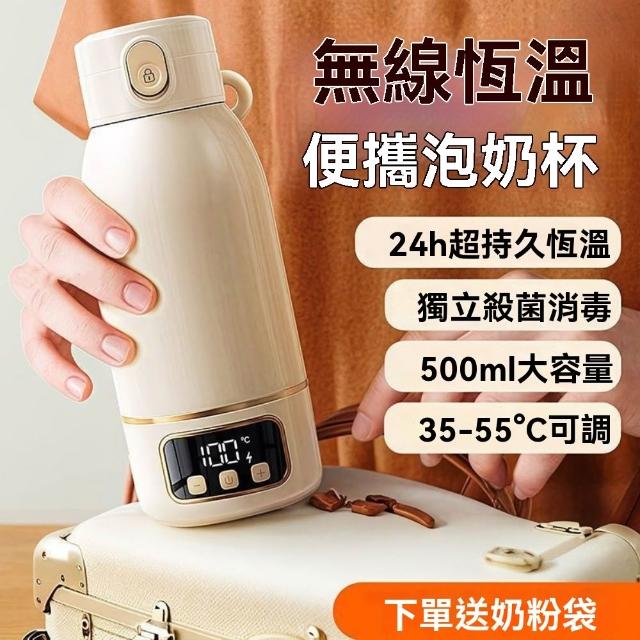 宜品居家恒溫保溫水杯 無線便攜式泡奶杯 外出恒溫水壺調奶杯(500ml泡奶杯/加熱保溫杯)