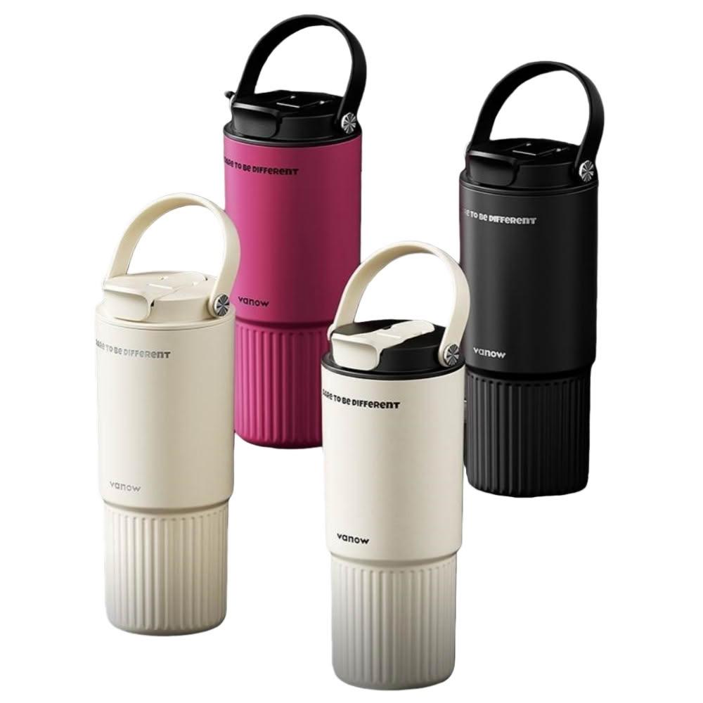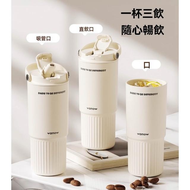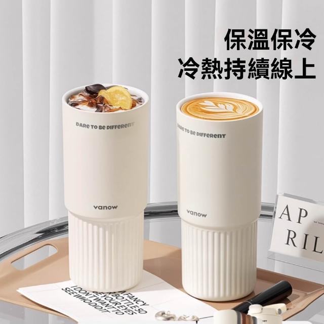 宜品居家Vanow保溫杯 800ml大容量陶瓷內膽咖啡杯 便攜車載吸管水杯子(保溫保冰/可拆卸茶漏/一蓋雙飲)