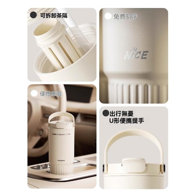 宜品居家Vanow保溫杯 800ml大容量陶瓷內膽咖啡杯 便攜車載吸管水杯子(保溫保冰/可拆卸茶漏/一蓋雙飲)