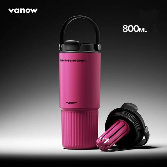 宜品居家Vanow保溫杯 800ml大容量陶瓷內膽咖啡杯 便攜車載吸管水杯子(保溫保冰/可拆卸茶漏/一蓋雙飲)