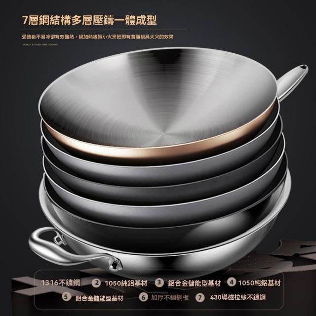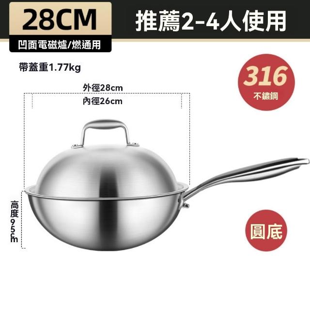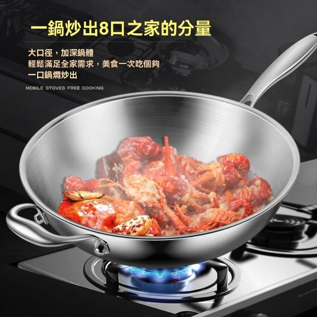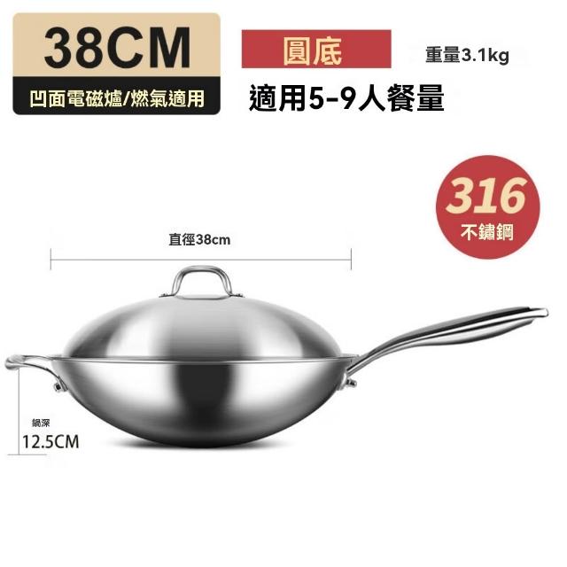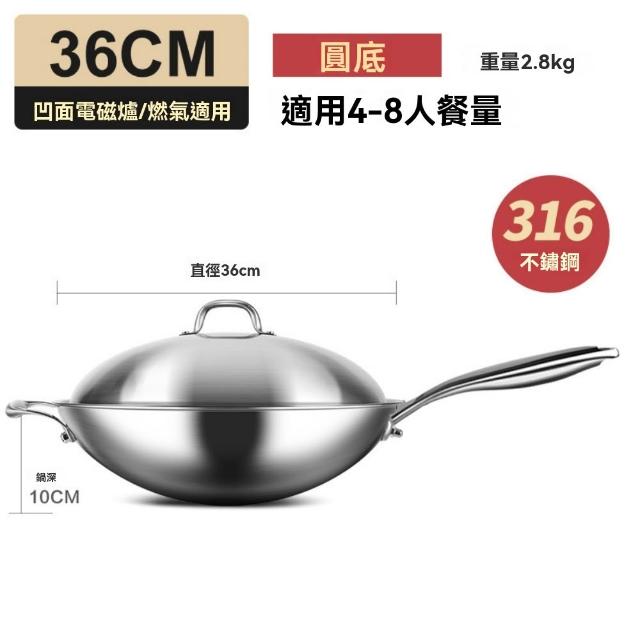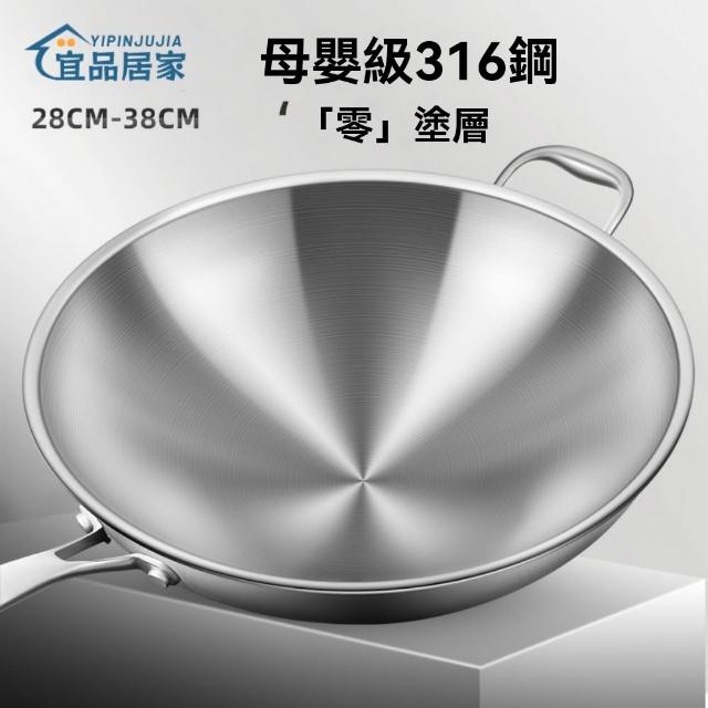 宜品居家36cm炒鍋 316不銹鋼鍋 無塗層圓底炒菜鍋(耐磨耐用/導熱均勻/物理不粘)