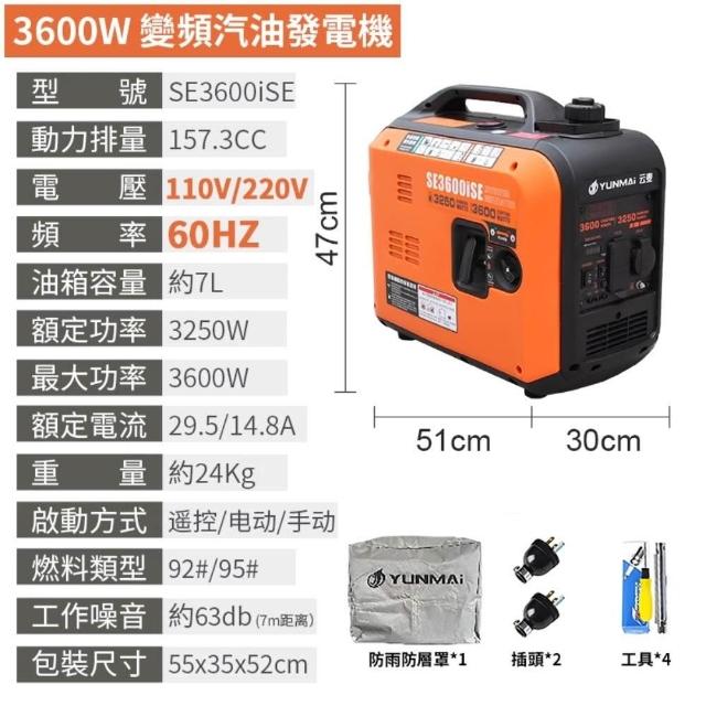 雲麥110V/220V手提靜音變頻汽油發電機 5.5Kw小型家用戶外車載發電(11L大油箱/雙電壓輸出/新升級消音)