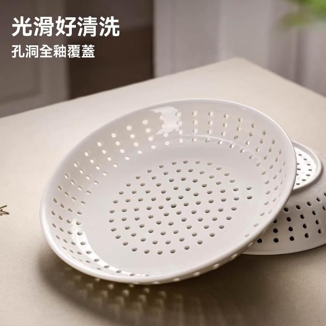 宜品居家陶瓷蒸盤 食品級餃子盤 多孔蒸包子熱饅頭蒸海鮮圓形蒸格 蒸籠屜篦子(陶瓷蒸盤)