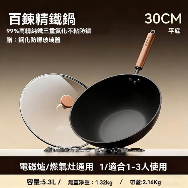 宜品居家34cm精鐵鍋 平底炒鍋 家用不銹無塗層免開鍋 電磁爐燃氣竈通用(物理不粘/防鏽抗刮/輕量鍋身)