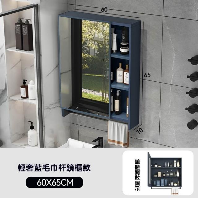 宜品居家太空鋁合金浴室鏡櫃 簡約衛生間掛墻式儲物鏡子(鏡櫃+毛巾桿/高清銀鏡/浴櫃)