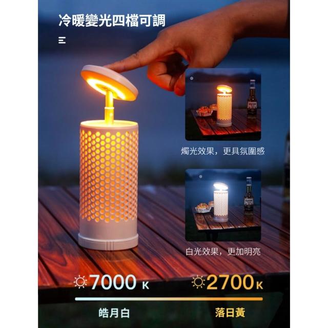 宜品居家戶外伸縮露營燈 充電式雙色氛圍補光燈 磁吸工作燈 汽修燈手提帳篷燈