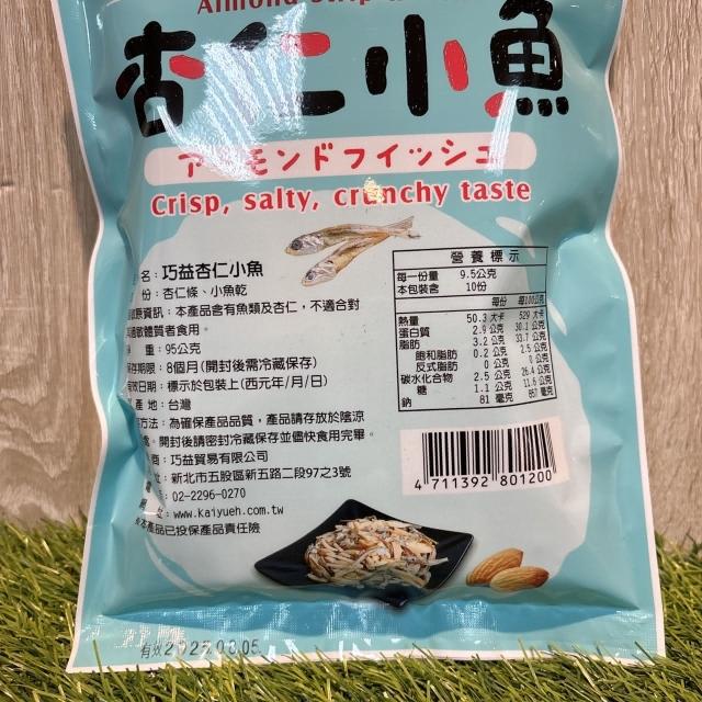 巧益酥脆杏仁小魚乾 95g 巧益杏仁小魚乾 隨身包 下酒菜 魚乾 小魚乾 無調味 獨立包裝