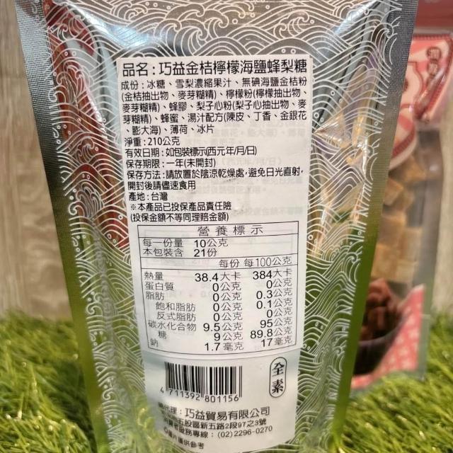 巧益天然草本全素 蜂梨糖 枇杷海鹽/金桔檸檬海鹽 210g 梨膏糖 草本喉糖 薄荷糖
