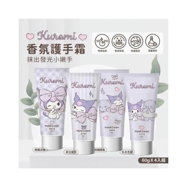 SANRIO 三麗鷗正版授權(附防偽標籤)三麗鷗 酷洛米香氛護手霜4入組 護手霜禮盒 粉紫蝴蝶結款 (60gx4入) 花香護手霜