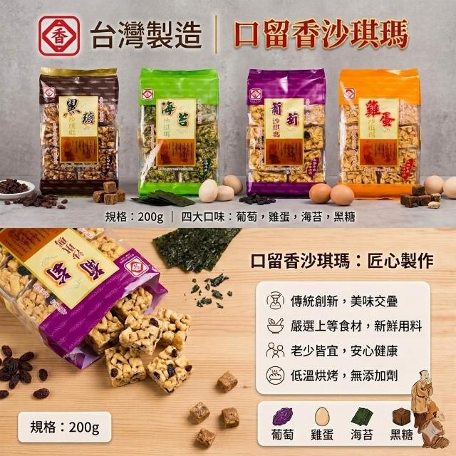 口留香經典老牌 沙琪瑪200g 10入 原味 雞蛋/葡萄/海苔/黑糖 古早味零食 沙琪瑪 蛋奶素