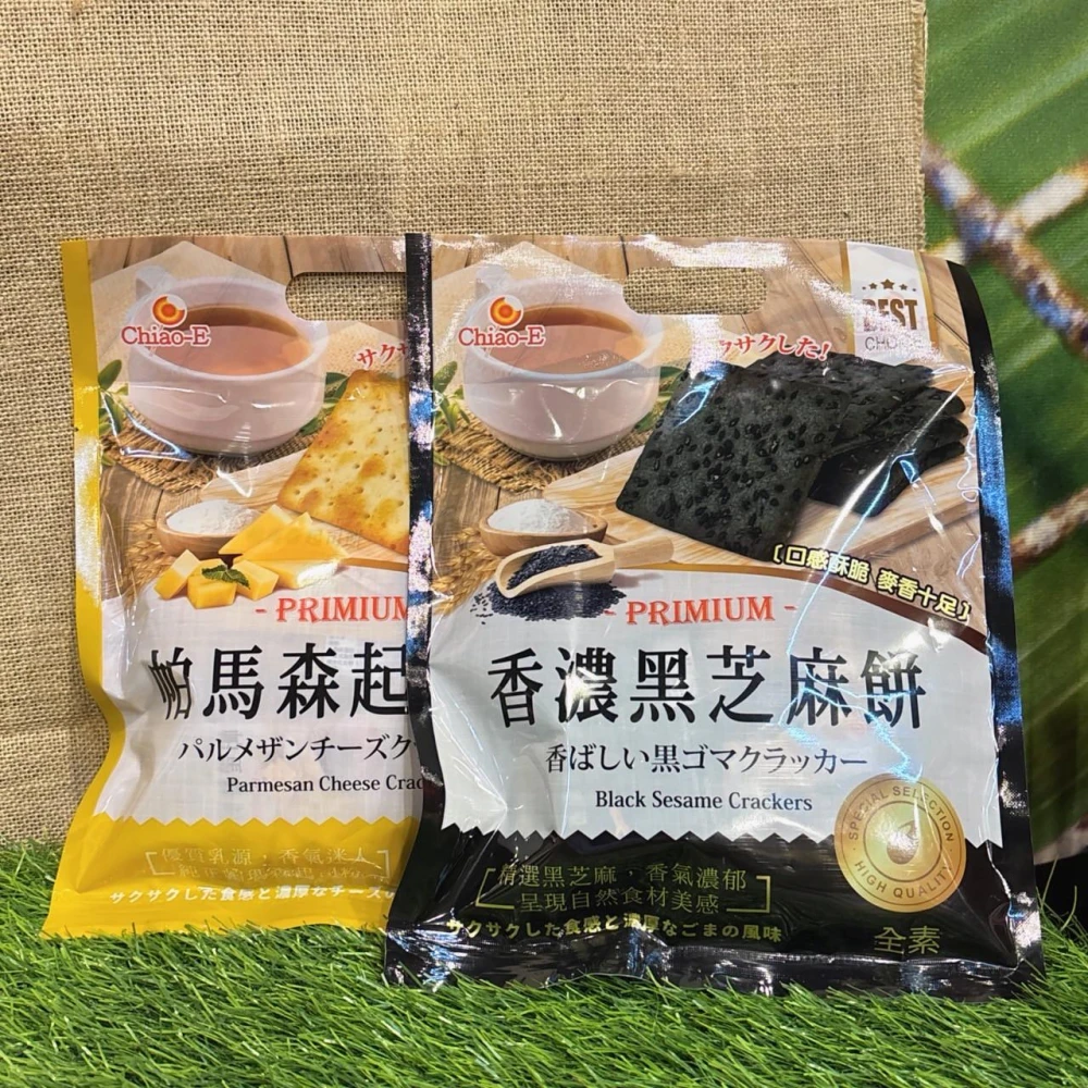 巧益帕瑪森起司餅/香濃黑芝麻餅 (奶素) 112g 芝麻餅 起司 全素/奶素 Chiao-E 蘇打餅 黑芝麻