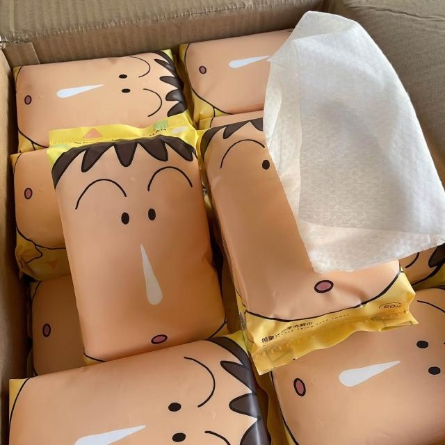 蠟筆小新 阿呆加厚拋棄式洗臉巾 60抽 一次性毛巾 加厚洗臉巾 珍珠紋 乾濕兩用 保齡球布