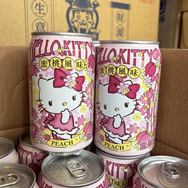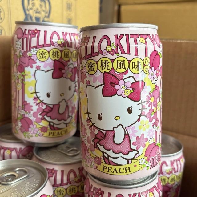HELLO KITTY正版聯名款 蜜桃風味汽水 (330mlx12罐/箱) 水蜜桃汽水 氣泡飲 易開罐飲品