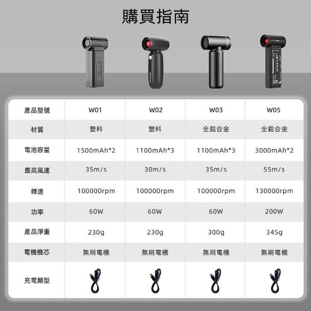 迷你渦輪風扇 W05戶外便攜無刷電機鼓風機 55 m/s大風速風扇 强力吹水除塵露營渦輪扇
