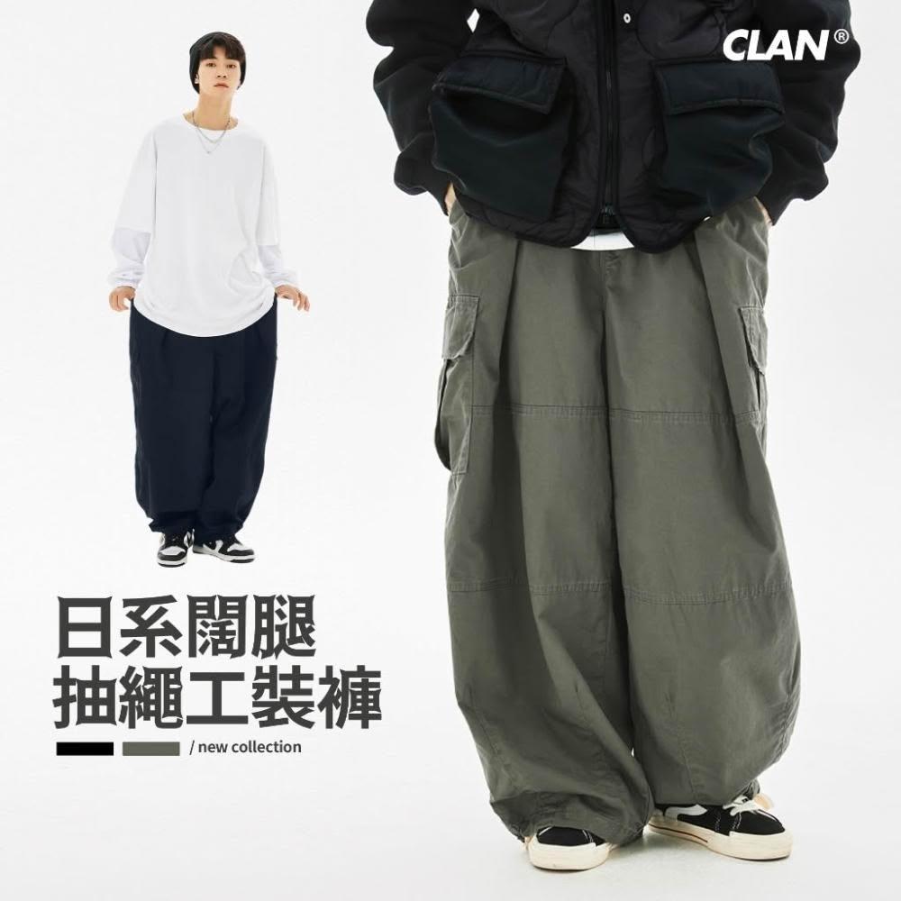 CLANCLAN 抽繩工裝褲 高規 寬鬆 抽繩束腳 工裝褲 工作褲 日系 寬鬆 工裝長褲 多口袋 寬褲 傘兵褲 闊腿褲 jks