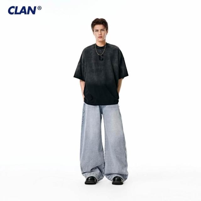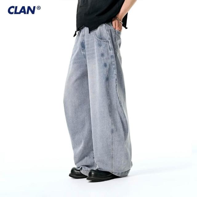 CLANCLAN 廓形洗水彎刀牛仔褲 落地褲 寬鬆 日系 復古 錐形褲 寬褲 燈籠褲 闊腿褲 垂墜感