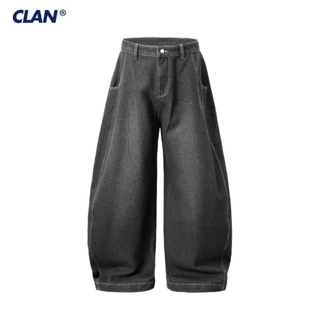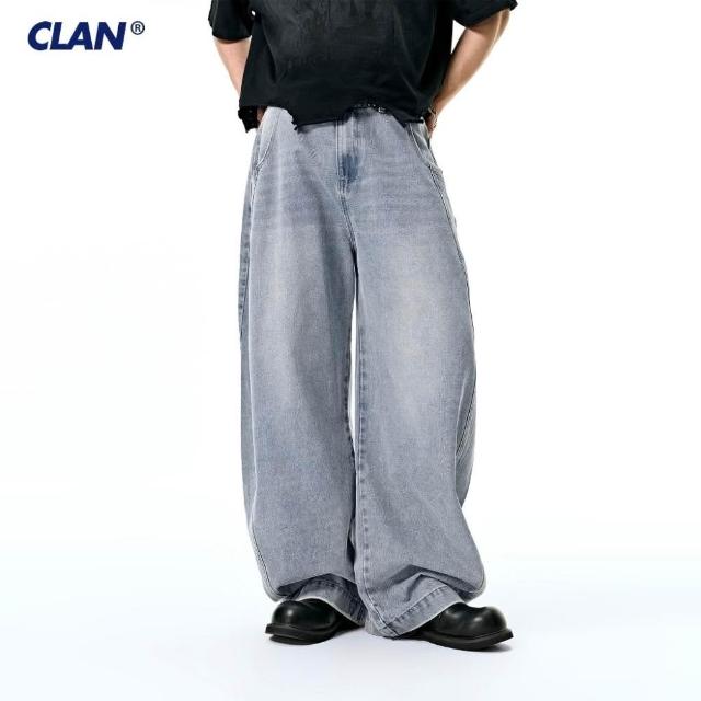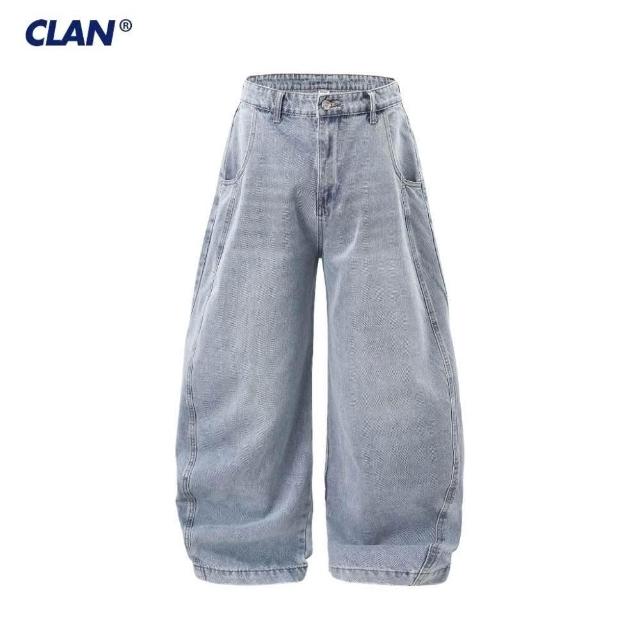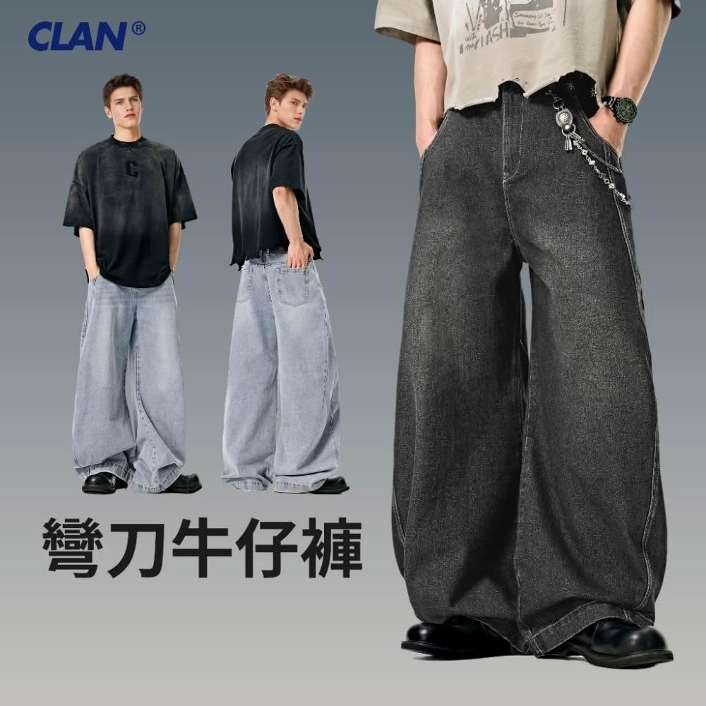 CLANCLAN 廓形洗水彎刀牛仔褲 落地褲 寬鬆 日系 復古 錐形褲 寬褲 燈籠褲 闊腿褲 垂墜感