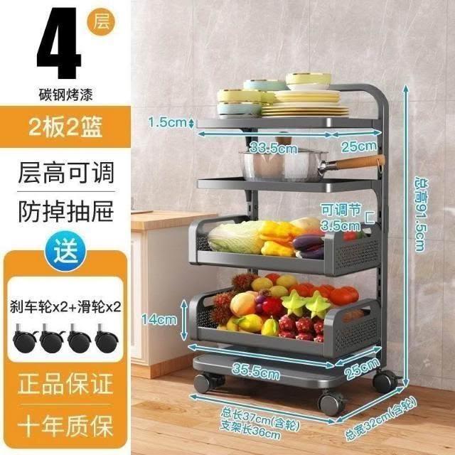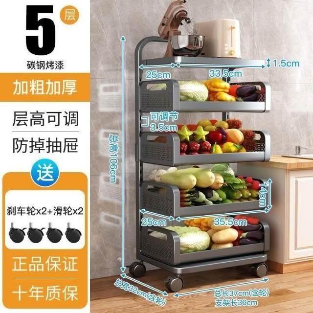 可拆洗 放水果蔬菜收納 小推車 落地 多層 廚房零食 旋轉 可調層高 置物架