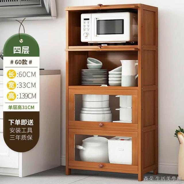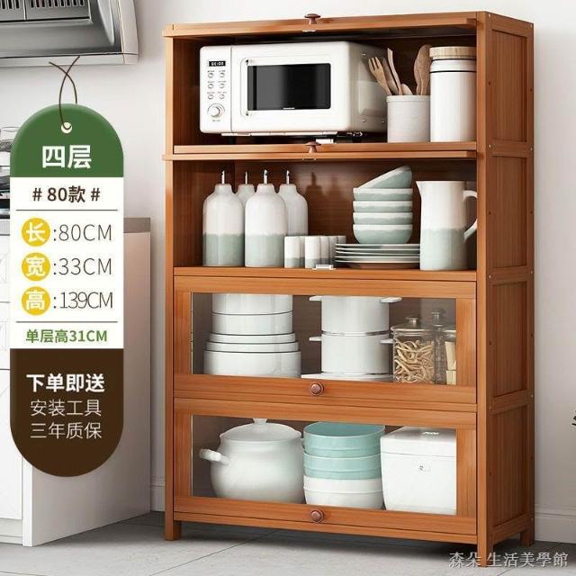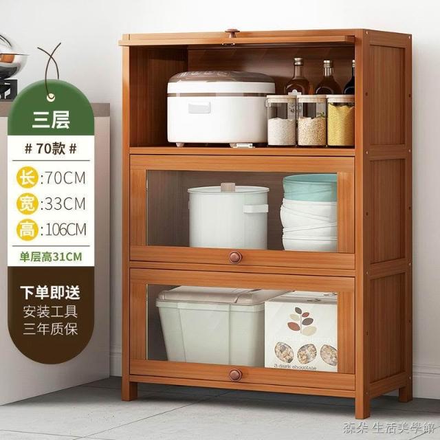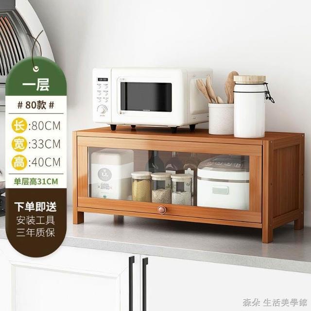 廚房層櫃 層架 碗盤收納櫃三層電鍋架 廚具鍋具分層收納架多層置物架 收納層架組 整理架 放置架 壓克力附門櫥櫃分層架