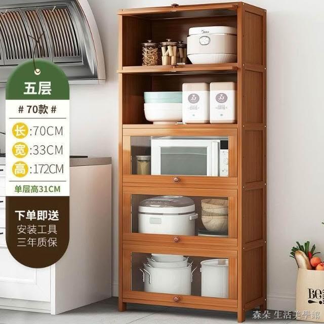 廚房層櫃 層架 碗盤收納櫃三層電鍋架 廚具鍋具分層收納架多層置物架 收納層架組 整理架 放置架 壓克力附門櫥櫃分層架