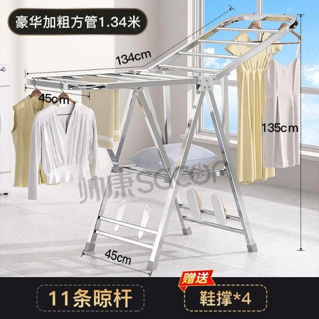 廠傢直銷 特厚不銹鋼曬衣架 304晾衣架 折疊曬衣架 落地衣架 曬被子 晾衣桿 吊衣架 曬衣服 曬衣桿 防鏽晾衣架