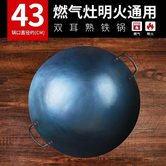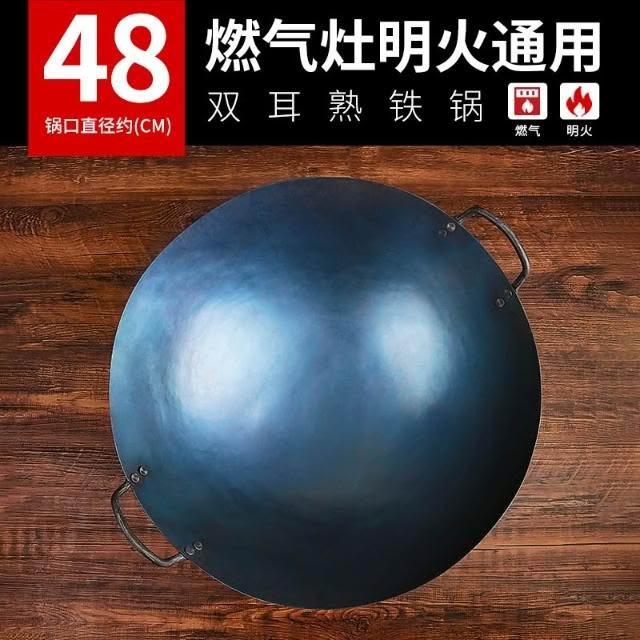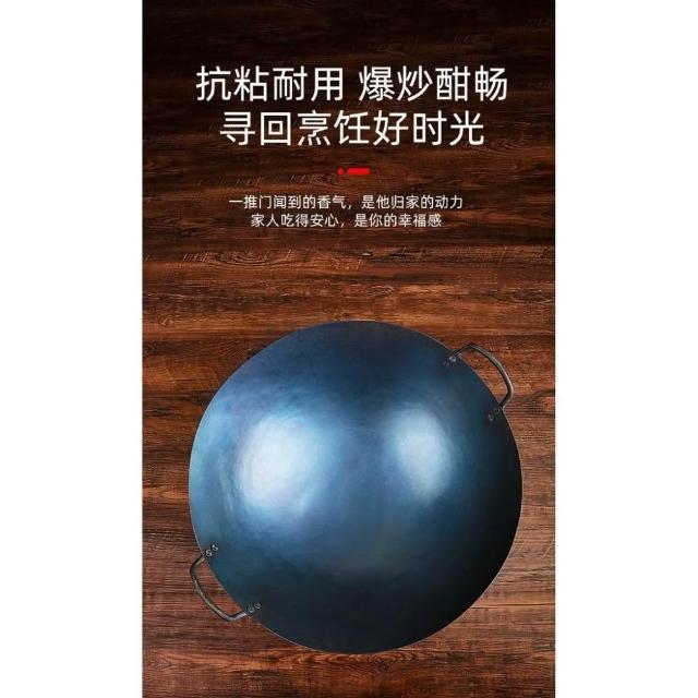 免運 高品質 陳枝記雙耳鐵鍋 商用熟鐵農村柴火灶大鍋 傳統老式炒菜鍋 家用無塗層鐵鍋