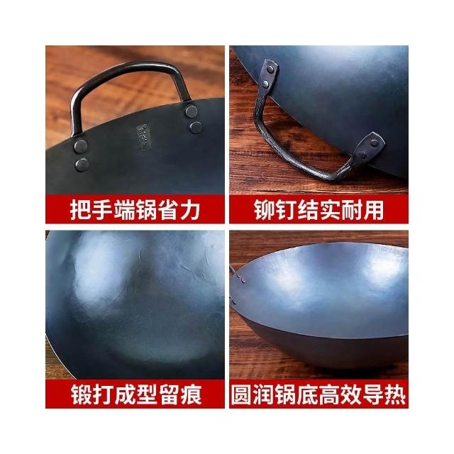 免運 高品質 陳枝記雙耳鐵鍋 商用熟鐵農村柴火灶大鍋 傳統老式炒菜鍋 家用無塗層鐵鍋