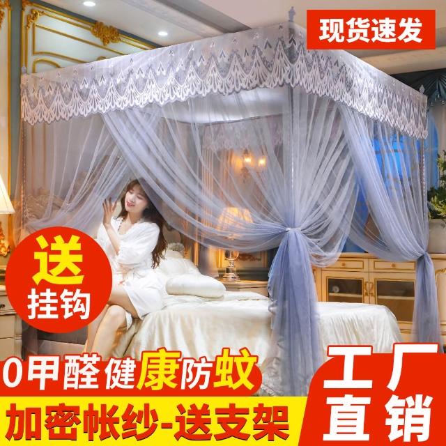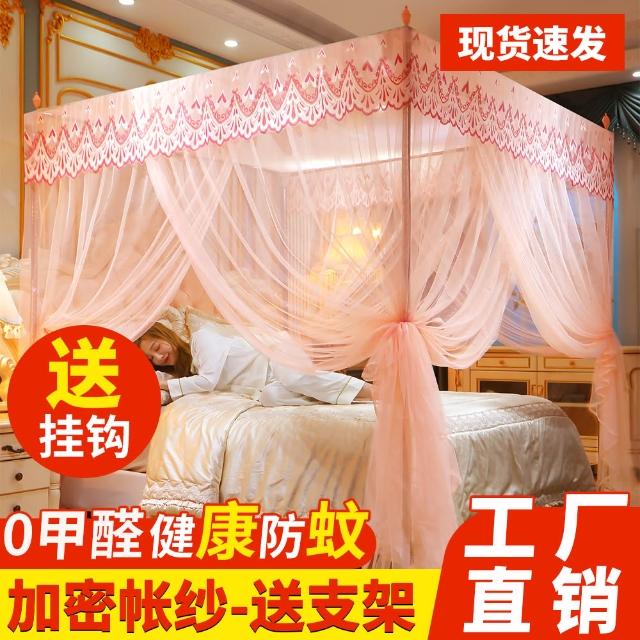 三开门蚊帐带加粗支架加密加厚1.5米1.2米帐纱落地家用宫廷纹帐子