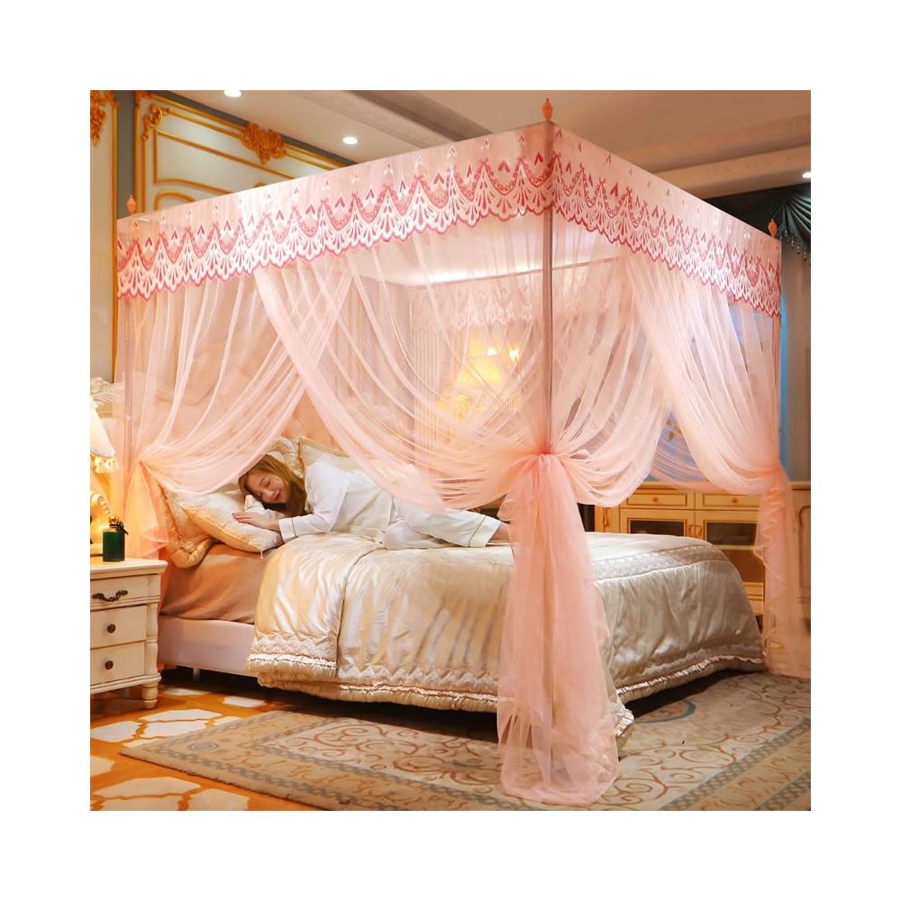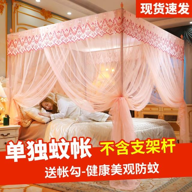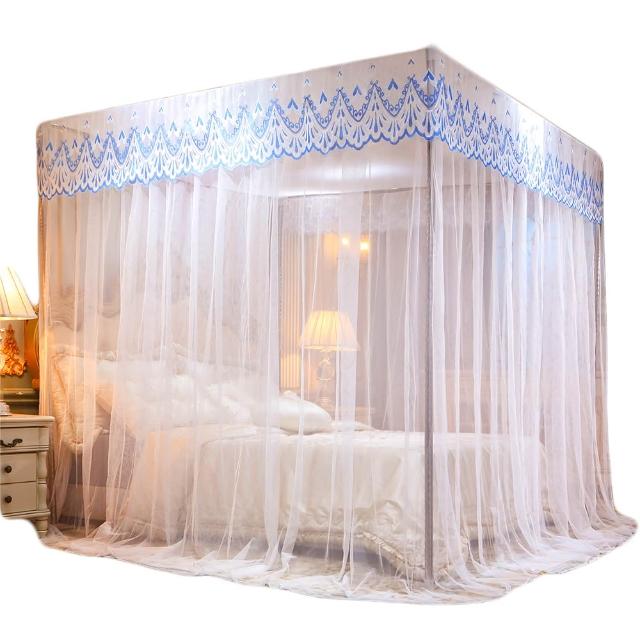 三开门蚊帐带加粗支架加密加厚1.5米1.2米帐纱落地家用宫廷纹帐子