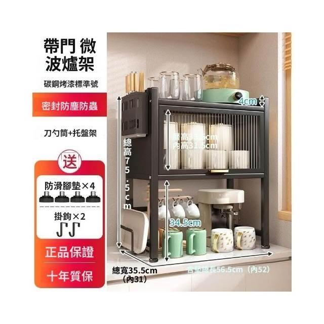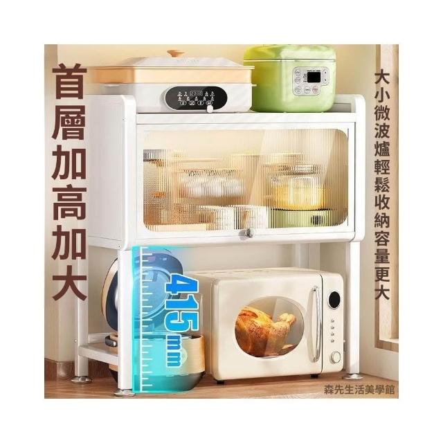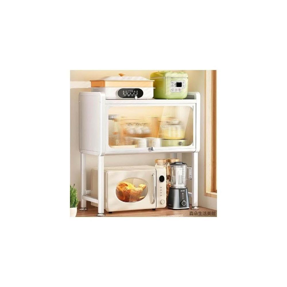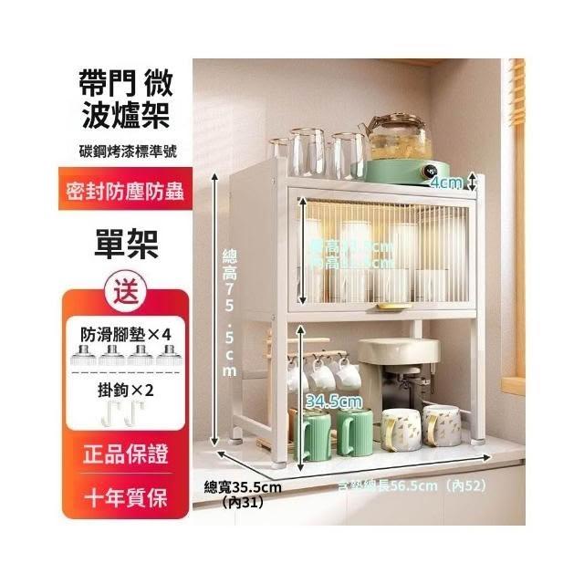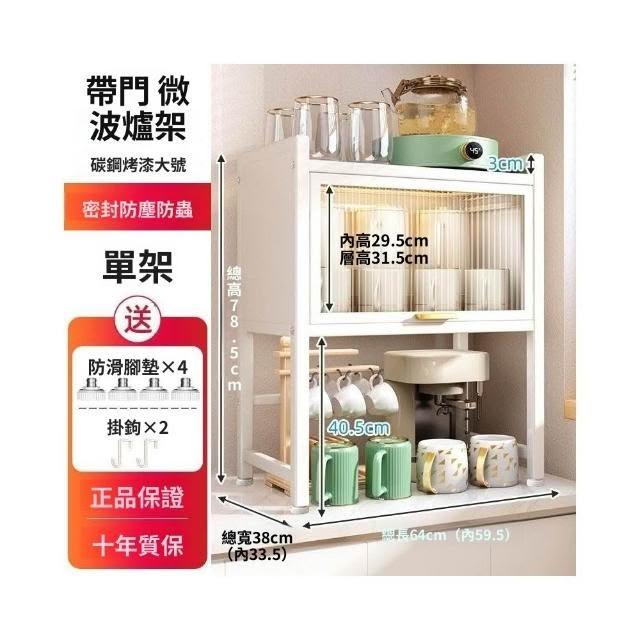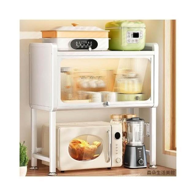 電器架 烤箱微波爐置物架 雙層圓角帶門翻蓋廚房置物架 臺面防塵碗盤架收納櫃 置碗架 碳鋼白鐵電器餐具收納架刀具電鍋架層架
