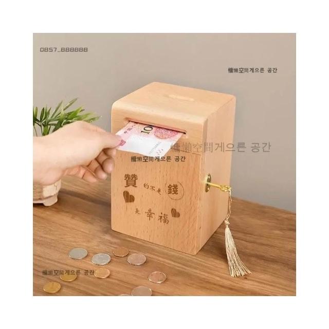 免運 可開發票 捐款箱 桌上型 捐錢箱木質存錢箱創意大人傢用儲蓄罐硬幣儲存罐衹進不出生日禮物 木質募捐箱 奉納箱