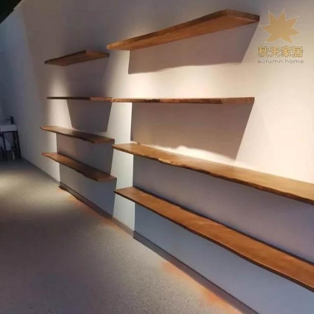 雪白家俱百貨 一字隔板置物架 實木無痕書架 牆壁架 原木層板 背景牆藝術裝飾板 鞋包壁掛架 層架 收納架 自然邊木板架