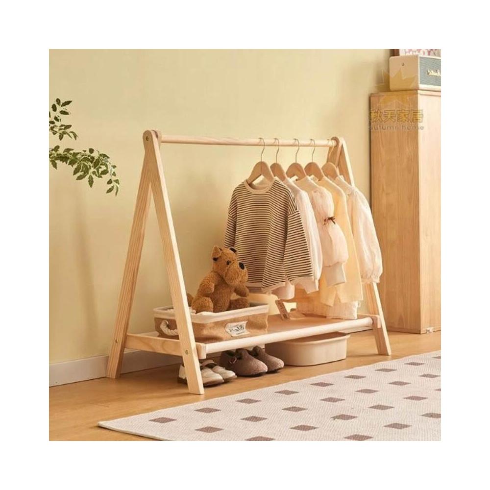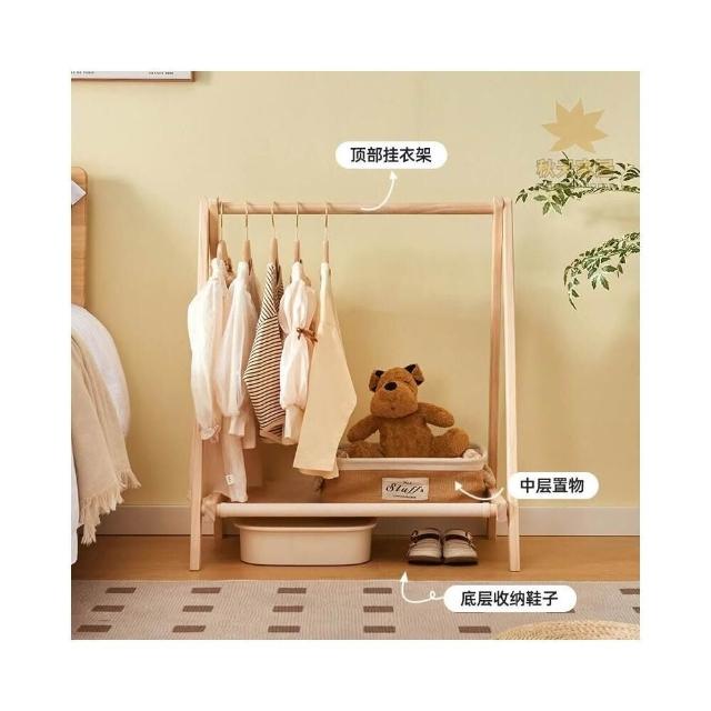 雪白家俱百貨 兒童衣帽架 實木落地掛衣架 卧室摺疊衣帽架 小型飄窗晾衣架 幼兒衣物收納置物架 兒童衣架