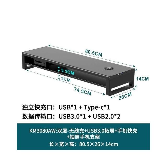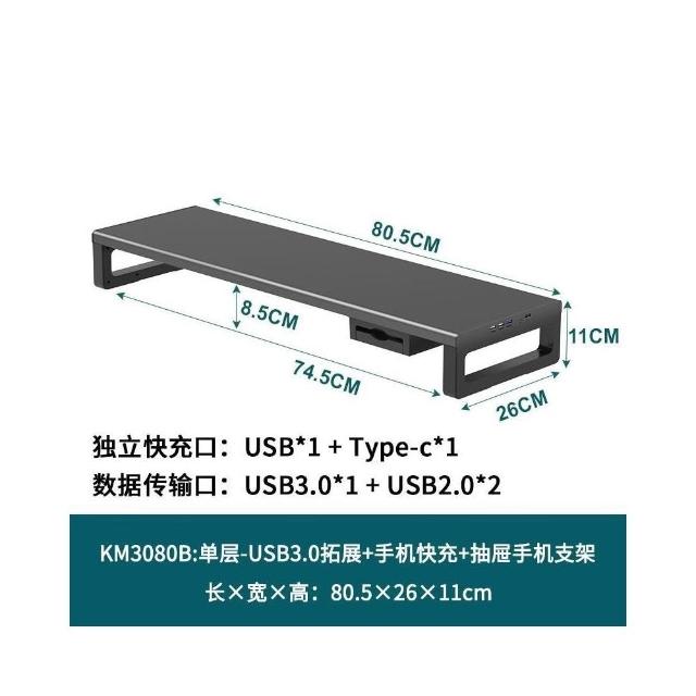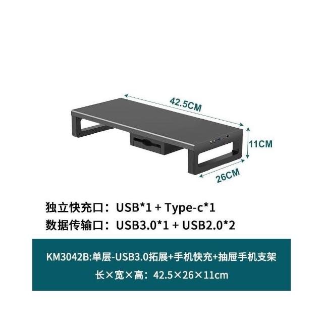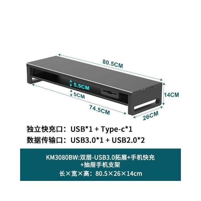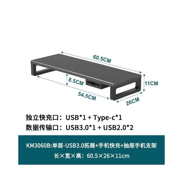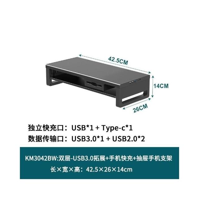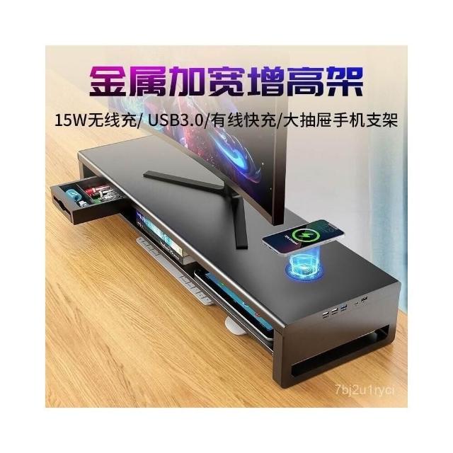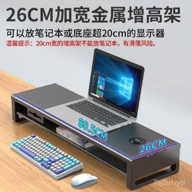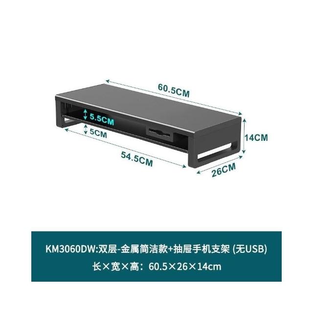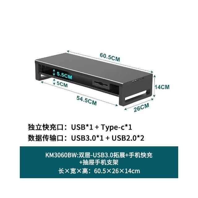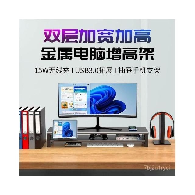 金屬雙層加長電腦顯示器增高架 USB擴展桌麵收納架 增高架 顯示器增高架 電腦屏幕增高架 桌麵收納架 桌麵置物架