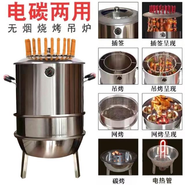 免運 不銹鋼吊烤爐 吊燒爐 桶子雞爐 燒烤爐 烤肉串 無煙烤爐 吊爐燒烤爐 戶外碳烤烤鴨燒烤架 家用無煙室內家庭版烤爐