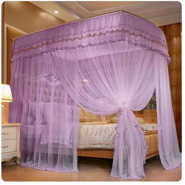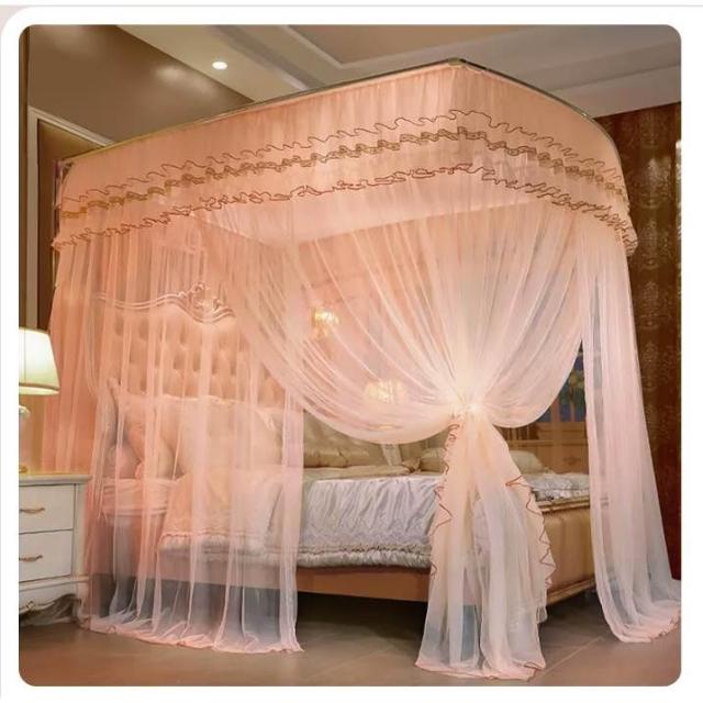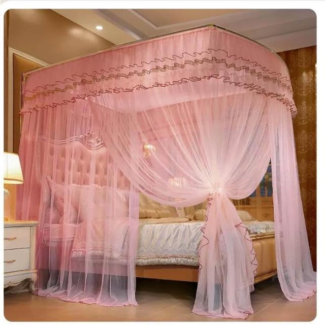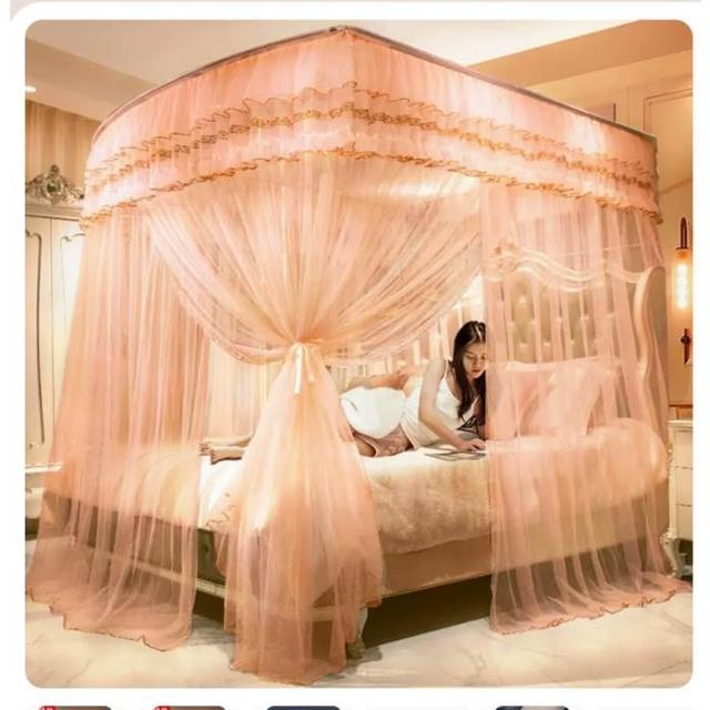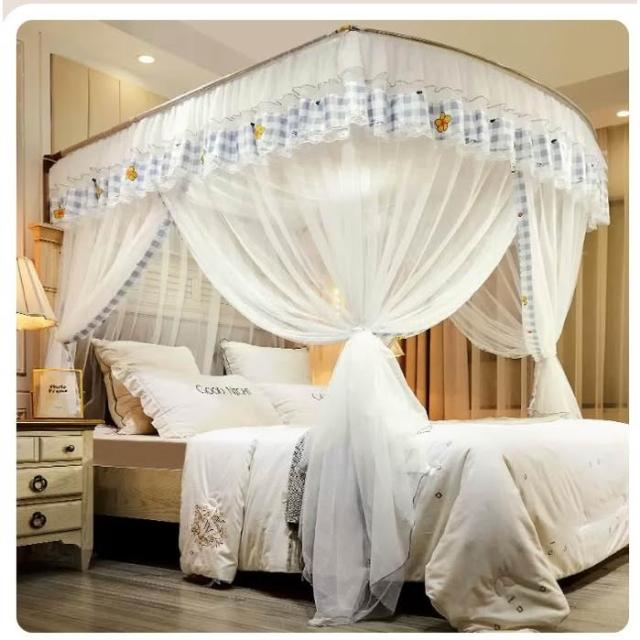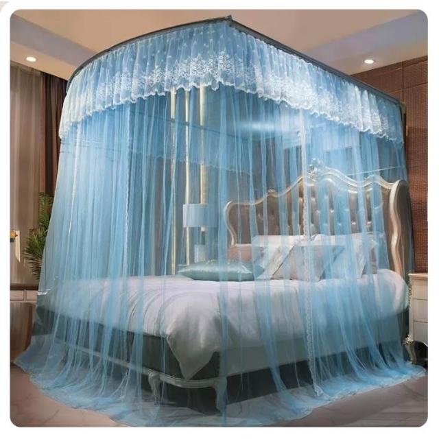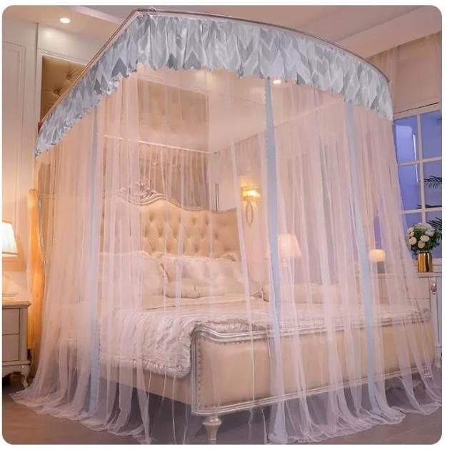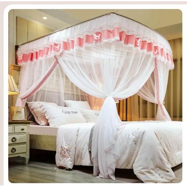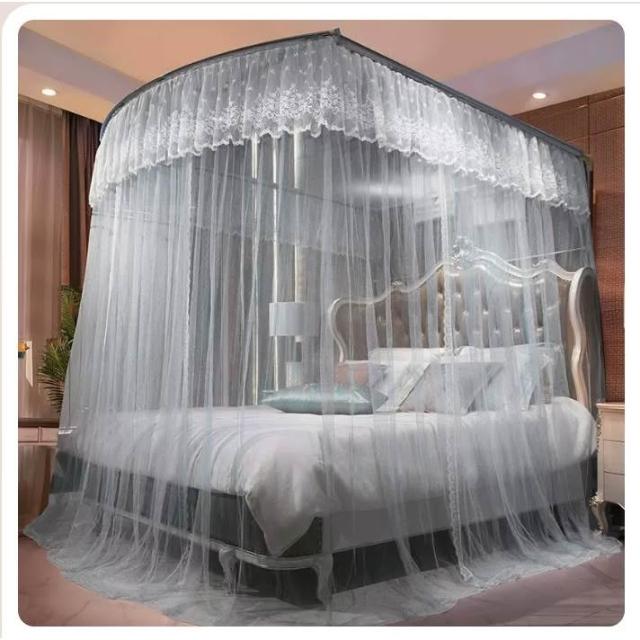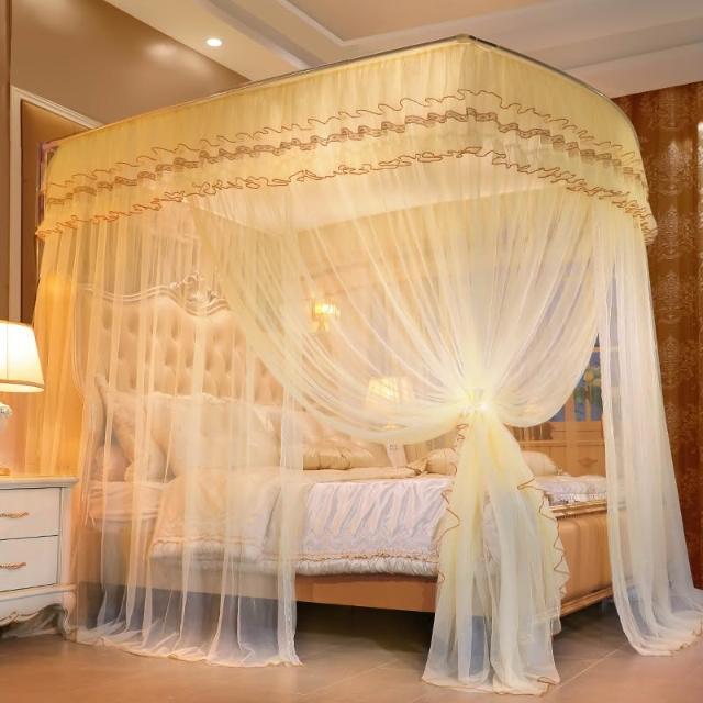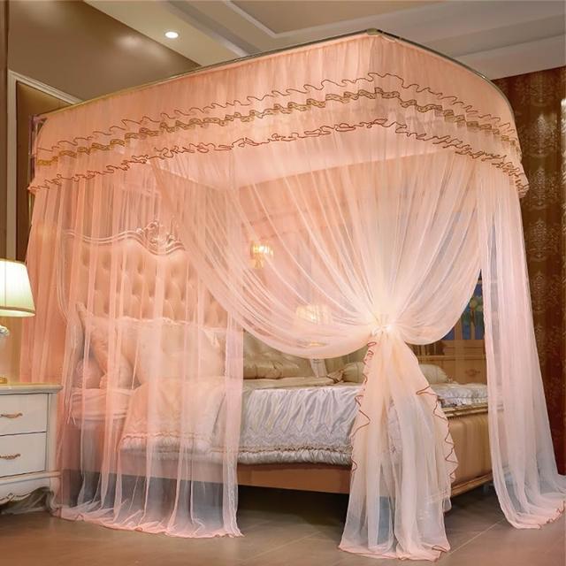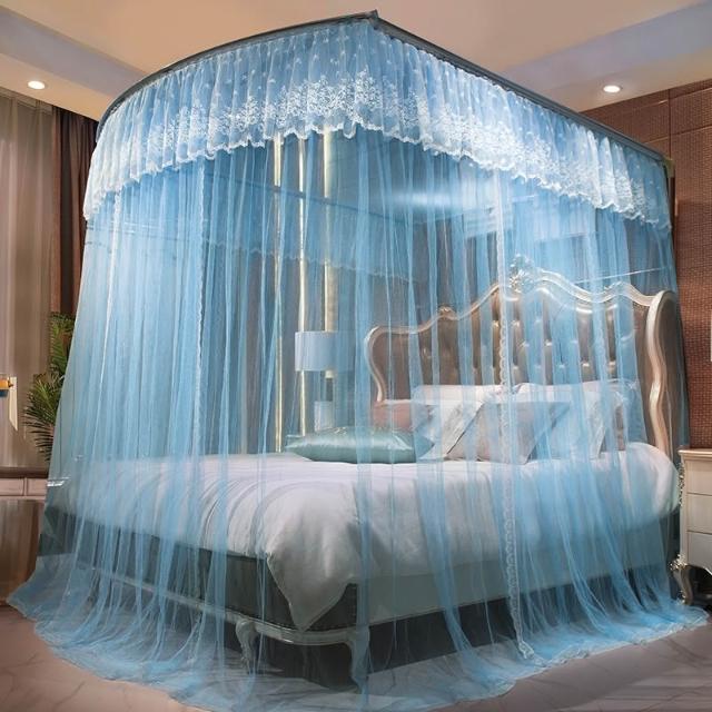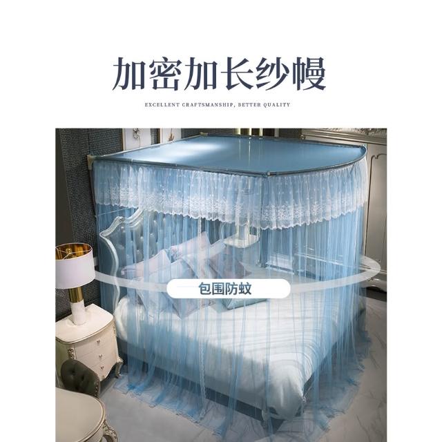 U型導軌滑輪蚊帳 U型伸縮三開門落地蚊帳 單人/雙人床蚊帳透氣雙人加大防蚊帳 加粗太空鋁支架蚊帳 兒童床蚊帳