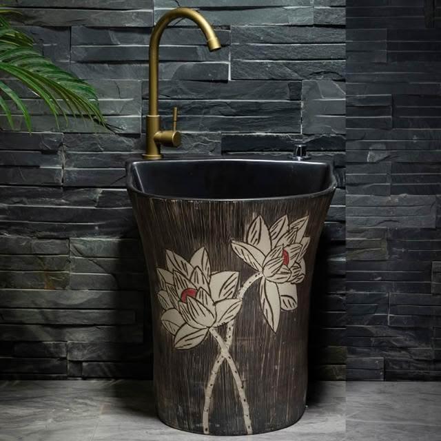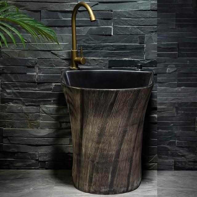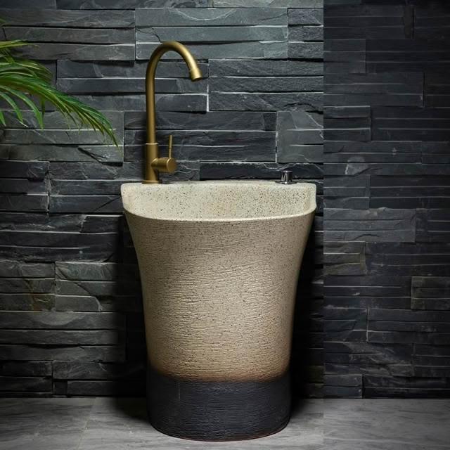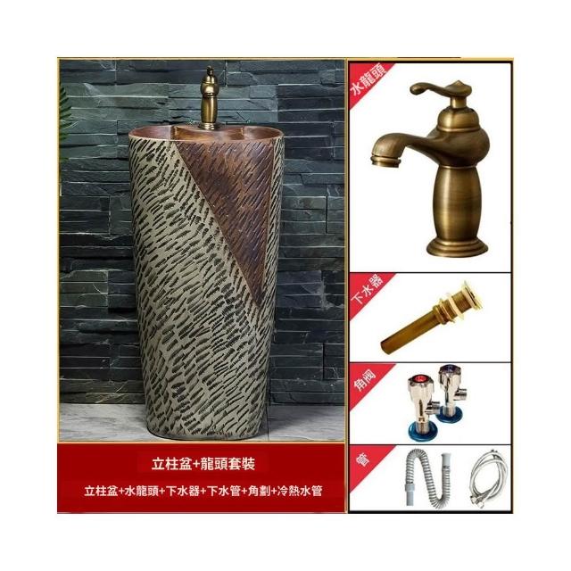 戶外洗手盆 庭院復古藝術立柱洗臉盆 拖把池別墅陶瓷室外陽台洗手台