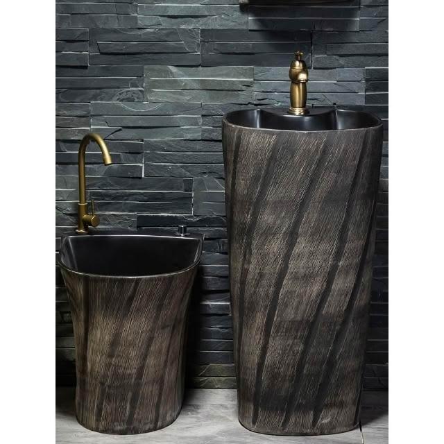 戶外洗手盆 庭院復古藝術立柱洗臉盆 拖把池別墅陶瓷室外陽台洗手台