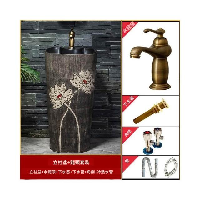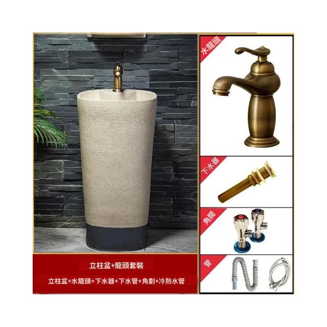 戶外洗手盆 庭院復古藝術立柱洗臉盆 拖把池別墅陶瓷室外陽台洗手台