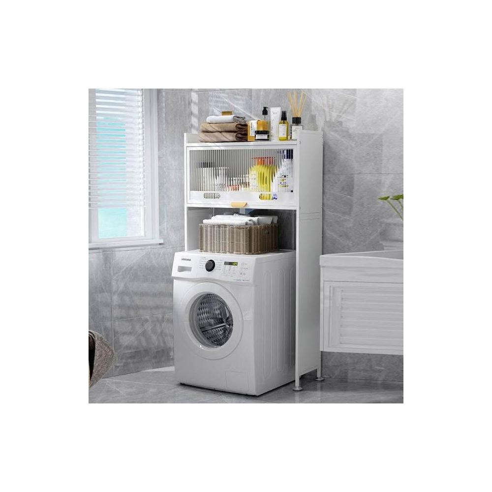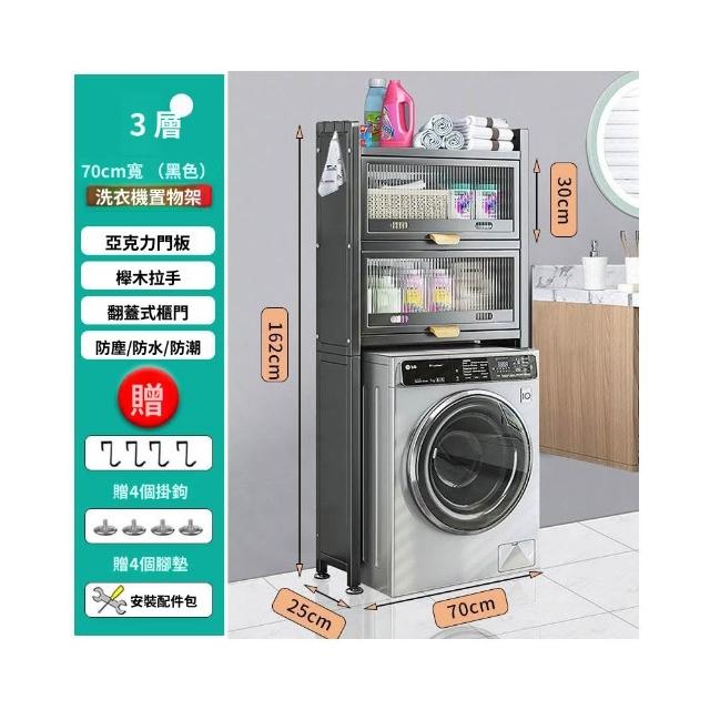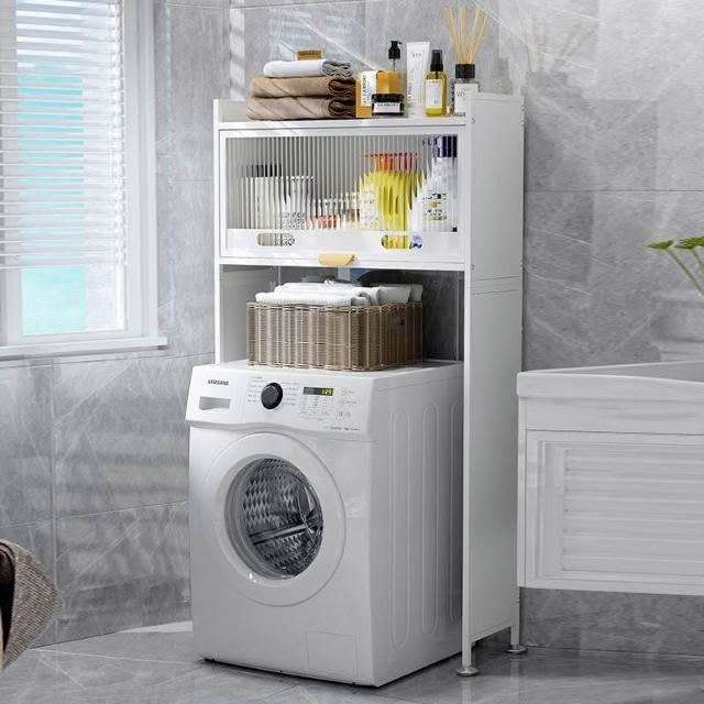 新款免運 帶櫃門滾筒洗衣機上方置物架翻蓋衛生間架子多層陽臺收納儲物櫃子