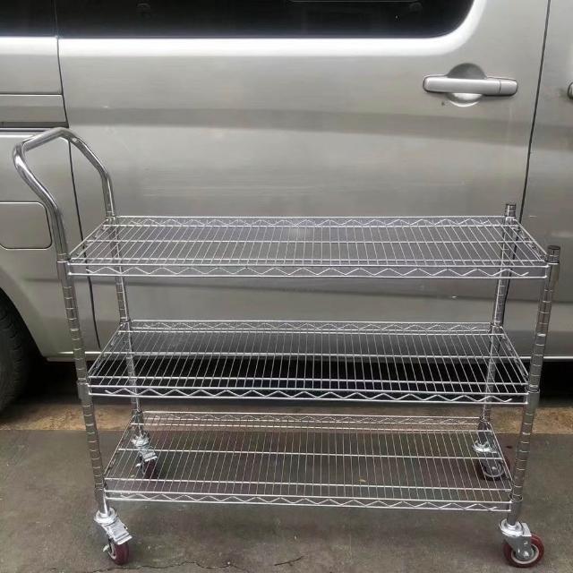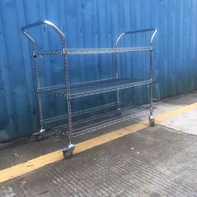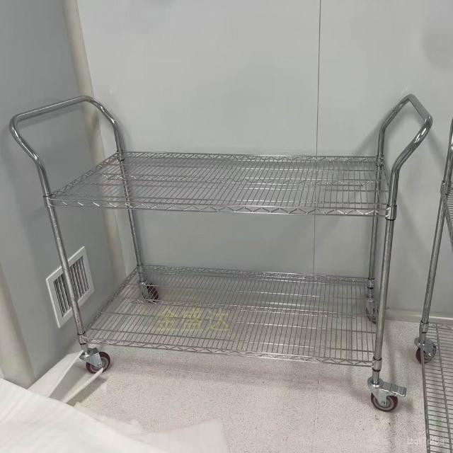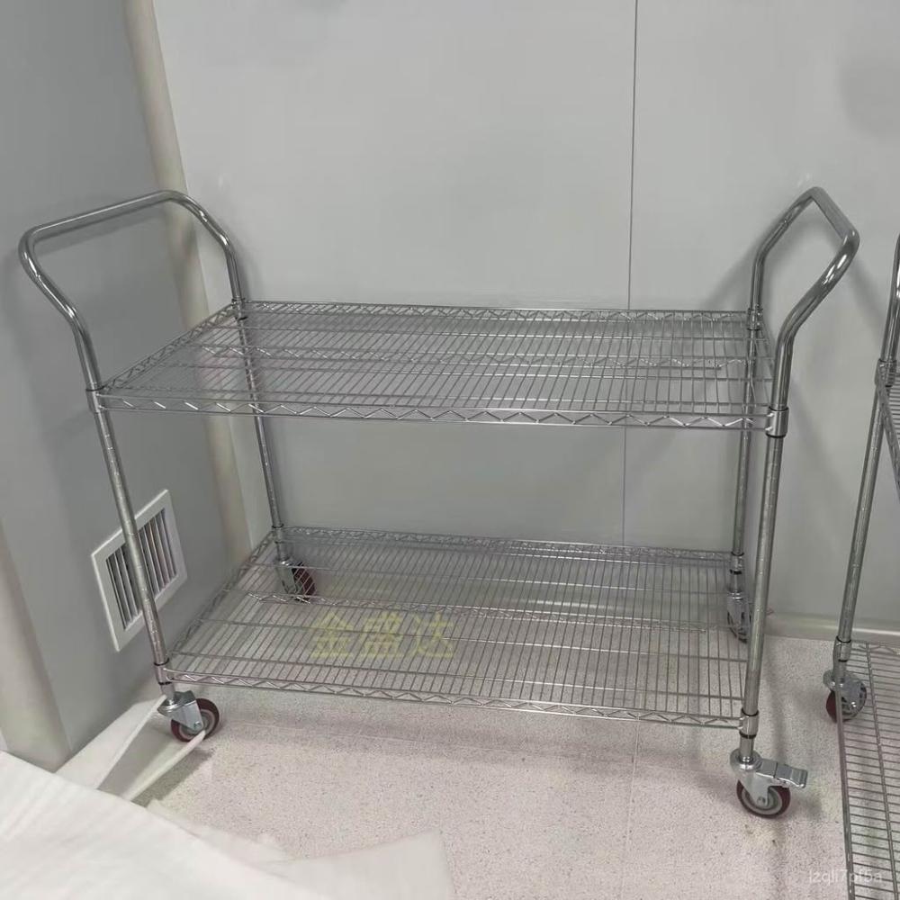 可開發票 熱銷 倉庫雙層 手推車 層物料 電商 揀貨車 線網鍍鉻 可移動 貨架帶輪輕便 分揀車 物流車